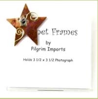 Cute metal art magnetic frame. Holds 3 1/2 " x 3 1/2 " pictures. Great to have in cubicles and on refrigerators or any metal item.