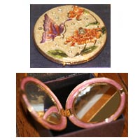 Pewter Enamelled foldover compact mirror by Rucinni. Embellished with butterfly & flowers and Austrian Swarovski Crystals.